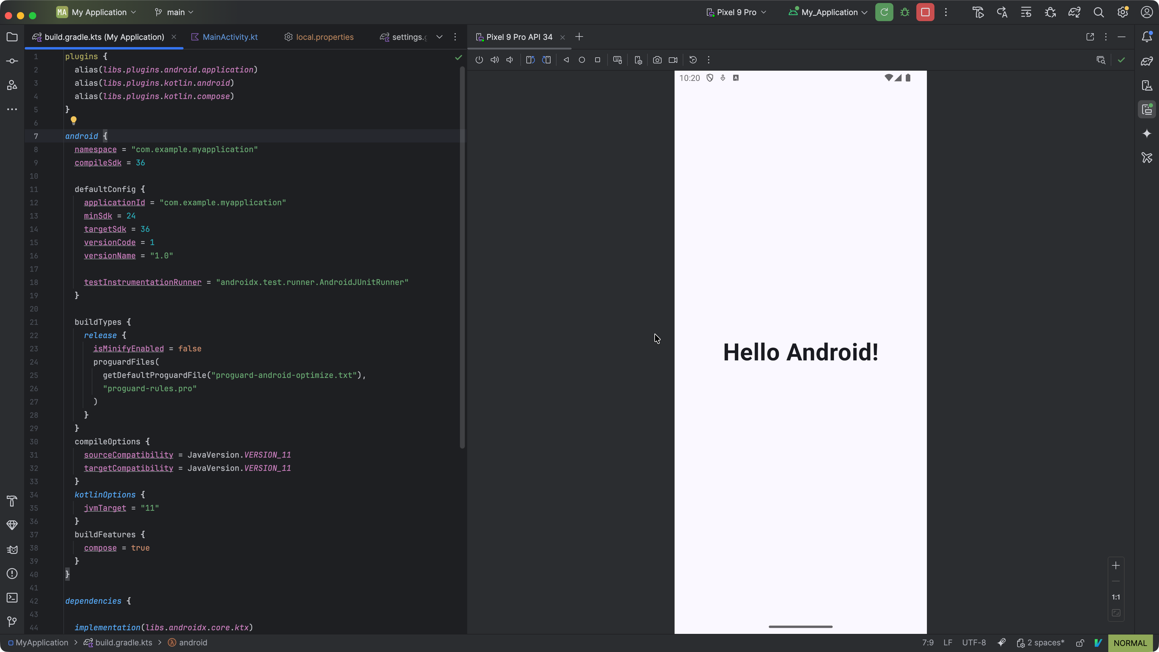 Behind the scenes, installDebug will build our app, and deploy it to any device or emulator we have running.